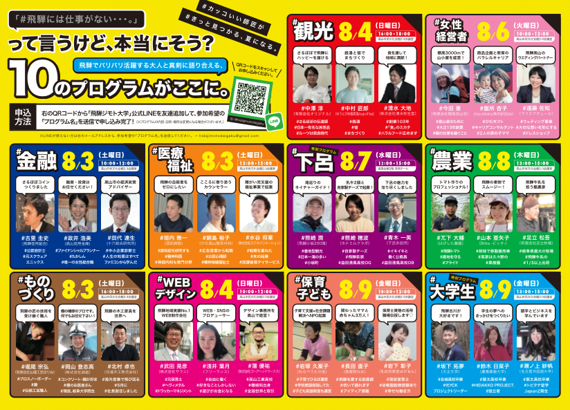 飛騨ジモト大学2019では10の座談会プログラムを開催いたしました。