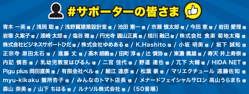 飛騨ジモト大学は多くの企業・個人の皆さまからのご協賛で活動できております。